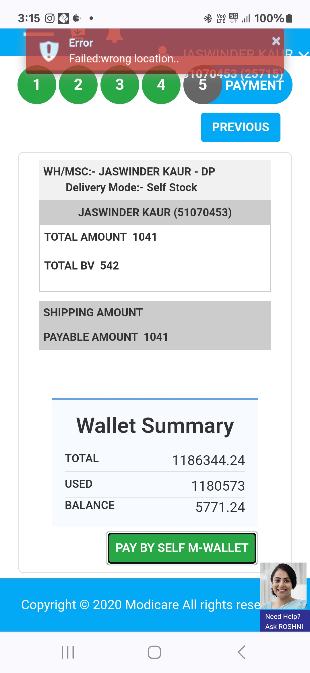 Sir when i done my billing there is a error I'm faced wrong Location